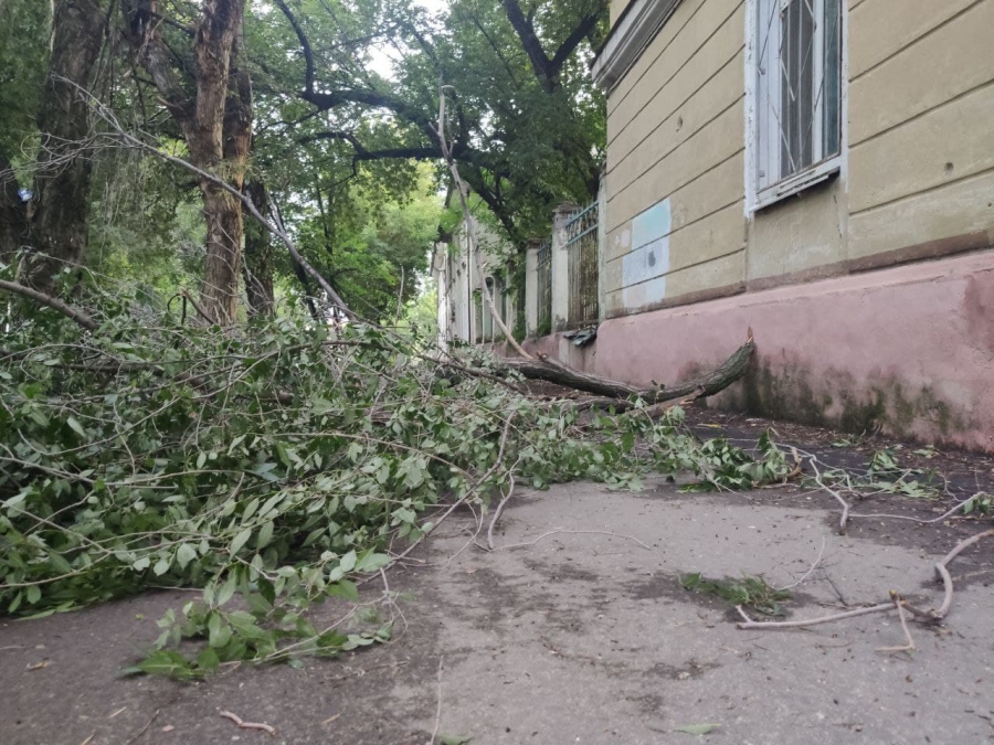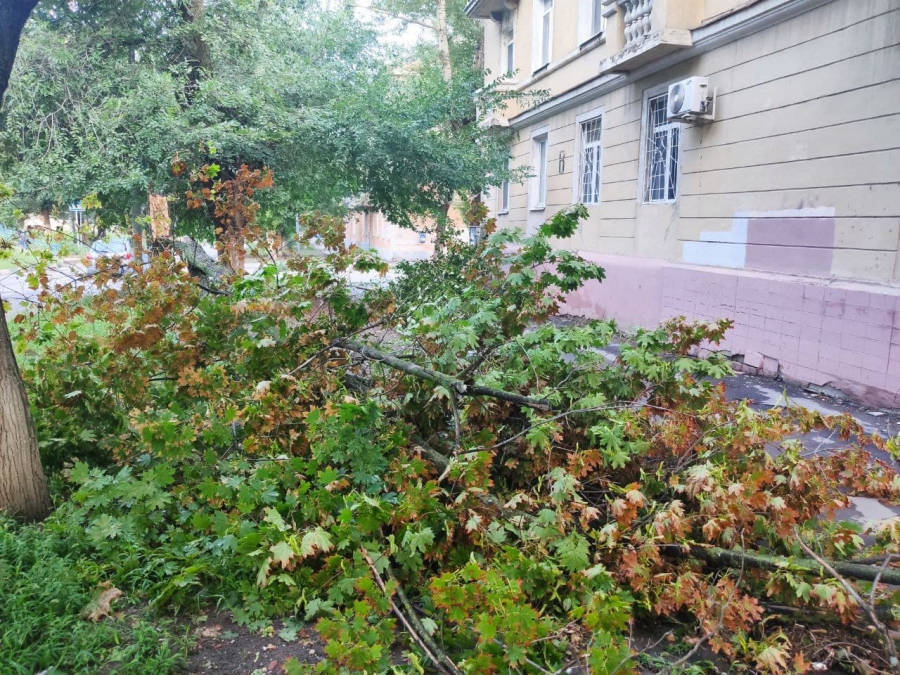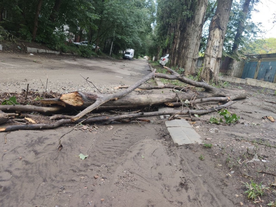 Вместе с тем, рабочих, которые приступили к ликвидации последствий непогоды, граждане заметили почти сразу после шторма. Например, на улице Шехурдина упавшее дерево перекрыло дорогу, но его уже за ночь убрали.