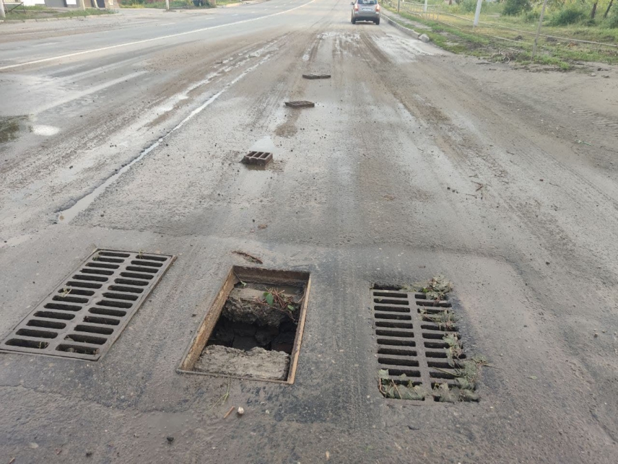 Помимо урагана, наблюдались и очень сильные осадки, которые не только затопили улицы, но и нанесли серьезный урон дорожному полотну: часть асфальта с щебнем вымыло, образовались рытвины.