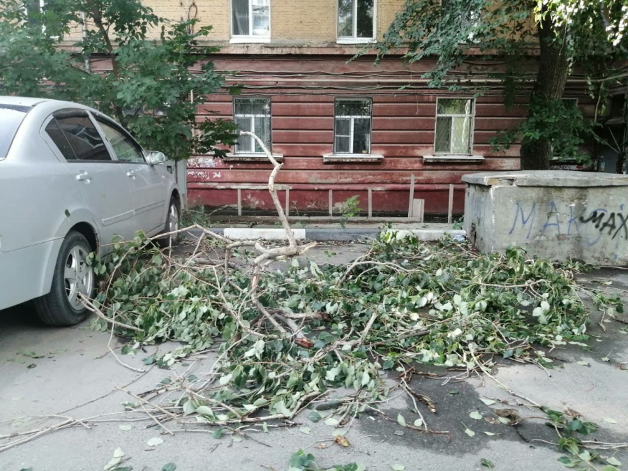 Ураганный ветер снес в Саратове деревья и металлические конструкции