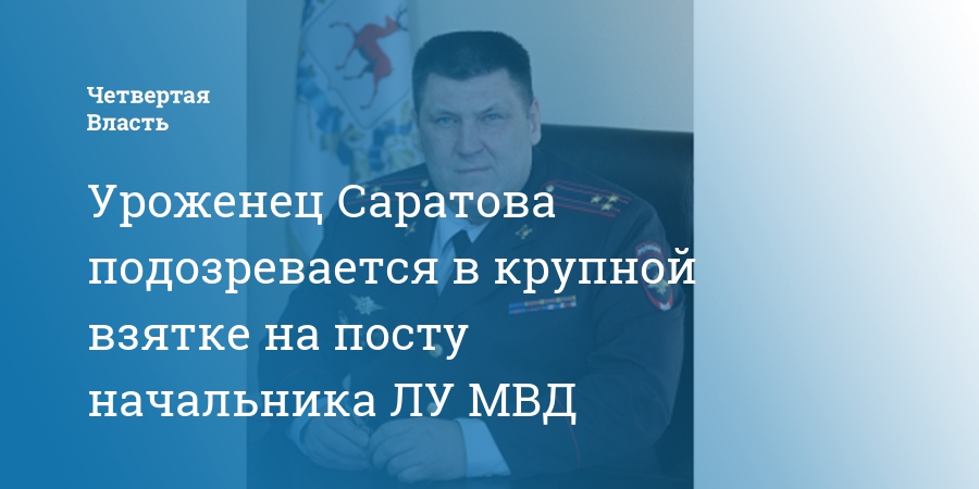 Уроженец Саратова подозревается в крупной взятке на посту начальника ЛУ МВД