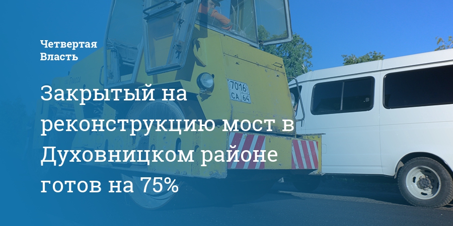 Закрытый на реконструкцию мост в Духовницком районе Саратовской области готов на 75%. Об этом сообщили в региональном министерстве транспорта и дорожного хозяйства.
