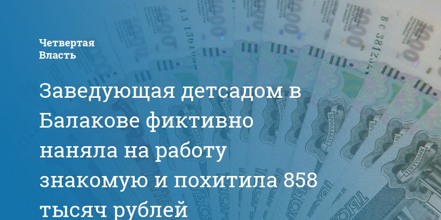 Заведующая детсадом в Балакове фиктивно наняла на работу знакомую и похитила 858 тысяч рублей