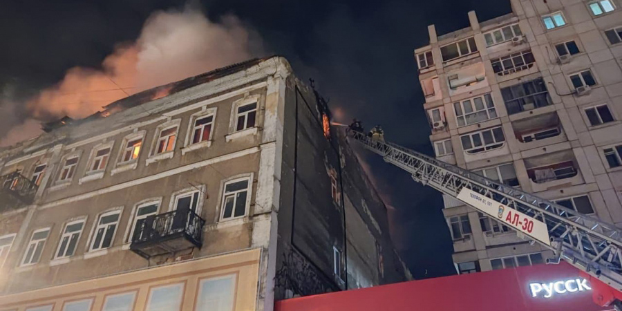 Напомним, историческое здание на перекрестке проспекта Кирова и улицы Максима Горького загорелось сегодня ночью. Его тушили 19 пожарных расчетов. Огонь повредил порядка 1700 кв.м объекта. Обошлось без пострадавших.