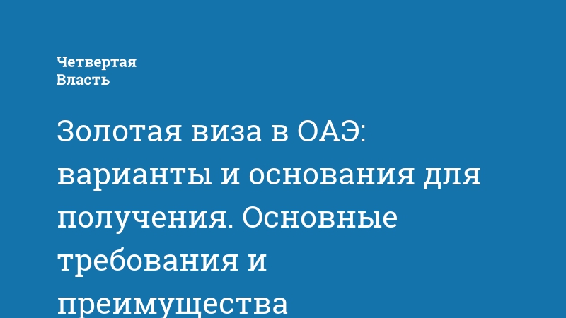 Золотая виза в ОАЭ: варианты и основания для получения. Основные требования и преимущества.