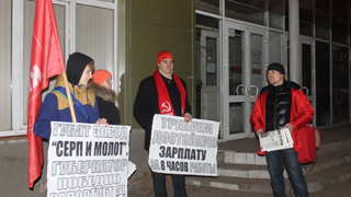 Сегодня у завода «Серп и молот» саратовские коммунисты провели пикет в поддержку работников предприятия. По словам организаторов, причиной проведения акции послужили обращения сотрудников предприятия.