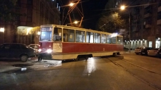 В центре Саратова трамвай сошел с рельсов и врезался в легковушку