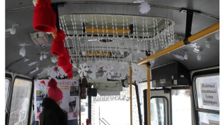 Для пассажиров школьники подготовили поздравительные плакаты с наступающим Новым годом и Рождеством с астрологическими прогнозами