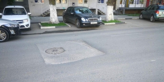 Просел участок восстановленного покрытия рядом со смотровым колодцем