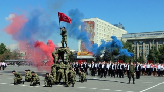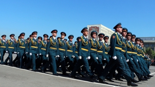 Началось все с объезда колонн. Мишнев и Чалый осмотрели внешний вид участников парада и поздравили с 74-й годовщиной Великой Победы