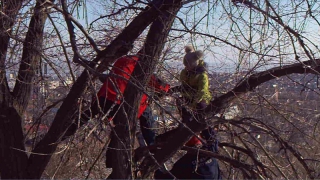 Спасатели обнаружили на дереве на высоте примерно 2-го этажа девочку. Она пояснила, что гуляла с подругой, залезла на дерево и боится спуститься вниз