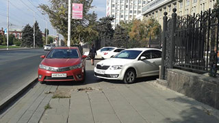 Полицейские возбудили административные дела в отношении водителей двух иномарок, устроивших парковку на тротуаре рядом со зданием правительства Саратовской области