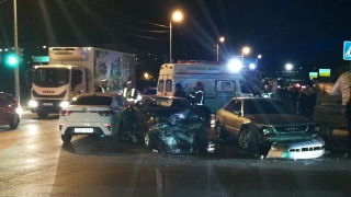 По предварительным данным, 28-летний водитель машины «Ауди А8» нарушил правила проезда перекрестка и столкнулся с автомобилями «ВАЗ-2114» и «Киа Рио»