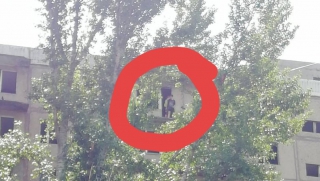 Дерево «закрепилось» на кондиционере нижними ветками и торчит перпендикулярно окну. «Найдите сначала, кто это сделал, а потом оденьте хозяина на елку вместо звезды», - посоветовали автору поста