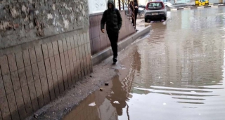 Вода здесь скапливается как перед подъездами, так и на проезде, и на парковке за домом