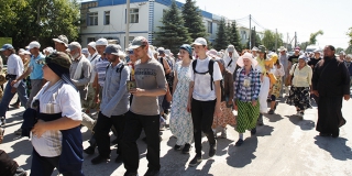 В этот день сюда съезжались сотни верующих, которые с пением молитв под колокольный звон мобильной звонницы шествовали от Покровской церкви