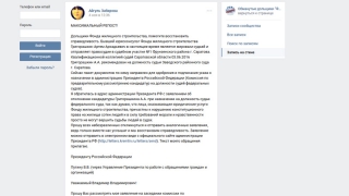 В социальной сети «ВКонтакте» группа «Обманутые дольщики Фонд жилищного строительства» обратилась к Президенту России Владимиру Путину с просьбой отклонить кандидатуру Артема Григорашкина на должность судьи Заводского районной суда г. Саратова