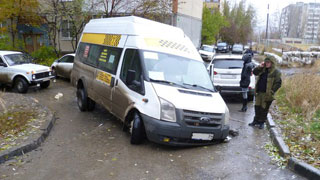 Сегодня утром в Заводском районе Саратова микроавтобус «Форд Транзит» провалился в яму, но выбраться из нее уже не удалось
