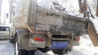 В Заводском районе Саратова самосвал выгружал снег во в дворах