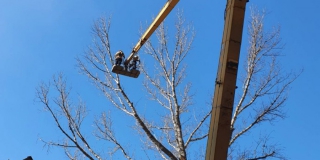 Спасатели, поднявшись на кране, произвели опиловку тополя и убрали дерево с пешеходной зоны