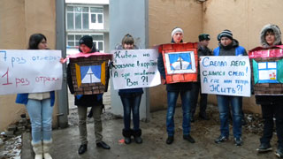 Сегодня в Заводском районе Саратова сотрудники управляющей компании «Горизонт», обслуживающей дом №19 по улице Брянской, закрылись в офисе при виде активистов «Молодой Гвардии»